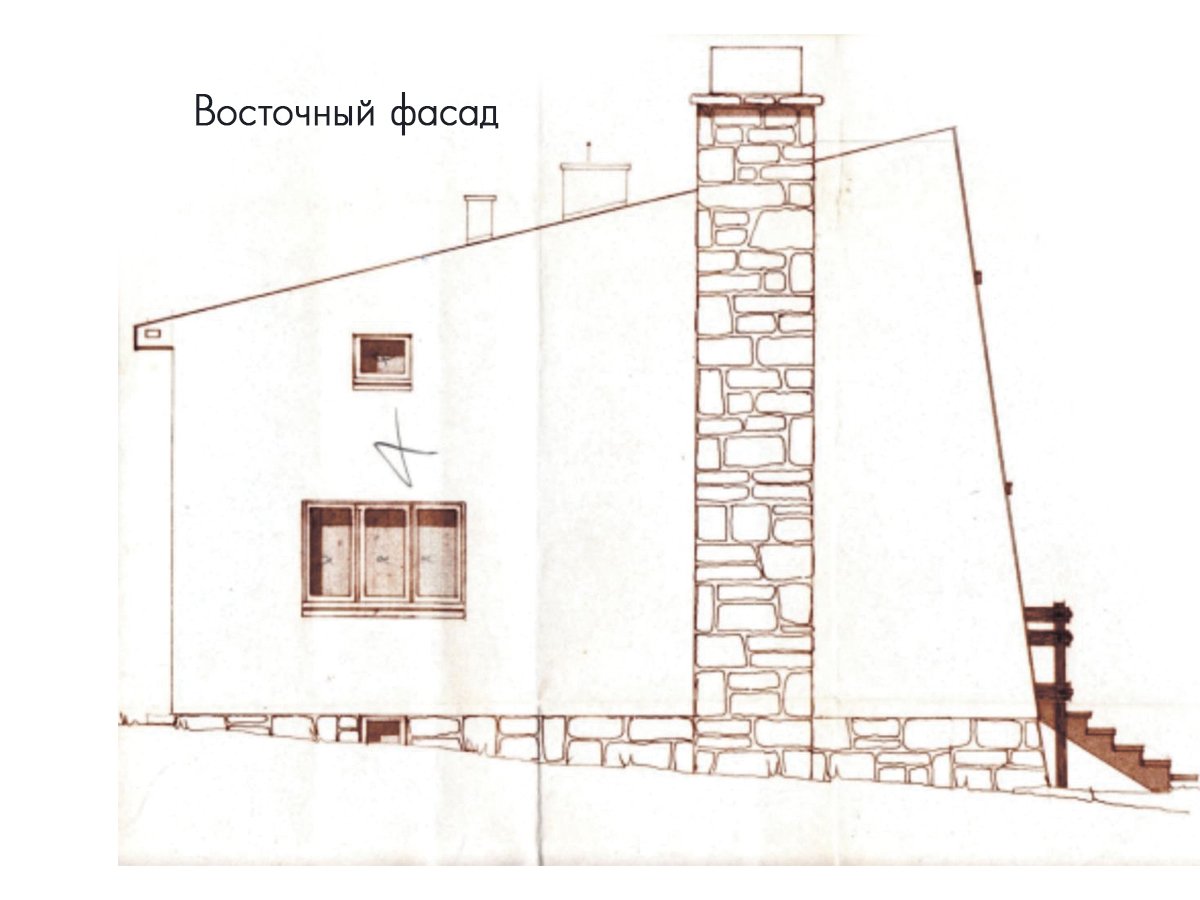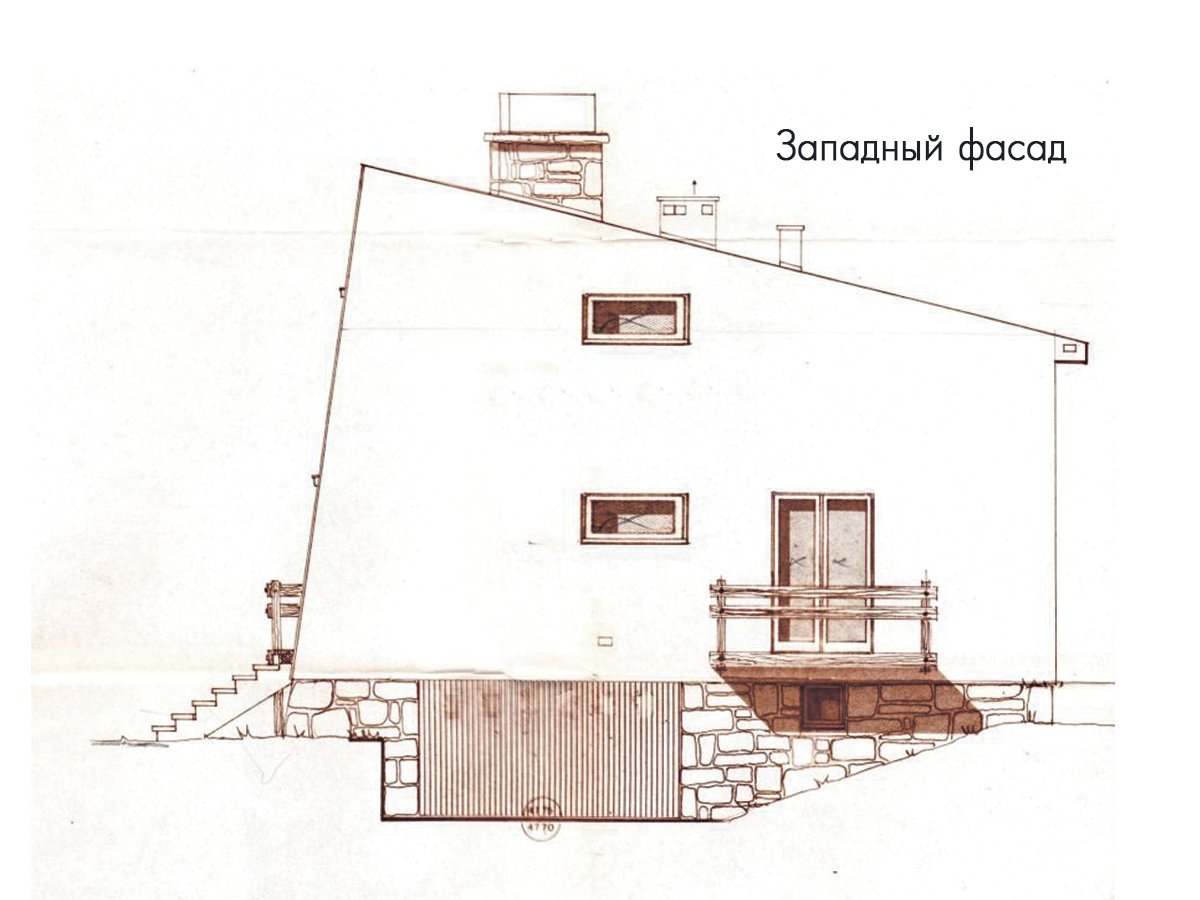 Налево от лестницы располагается просторный рабочий кабинет размером 4.65 х 4.15 м Пол в котором украшен шахматной плиткой с керамическим покрытием. Стены и потолок обшиты древесиной. Большое мансардное окно с широким подоконником выходит на частную подъездную дорогу и террасу у входа в виллу, на восточной стороне здания.